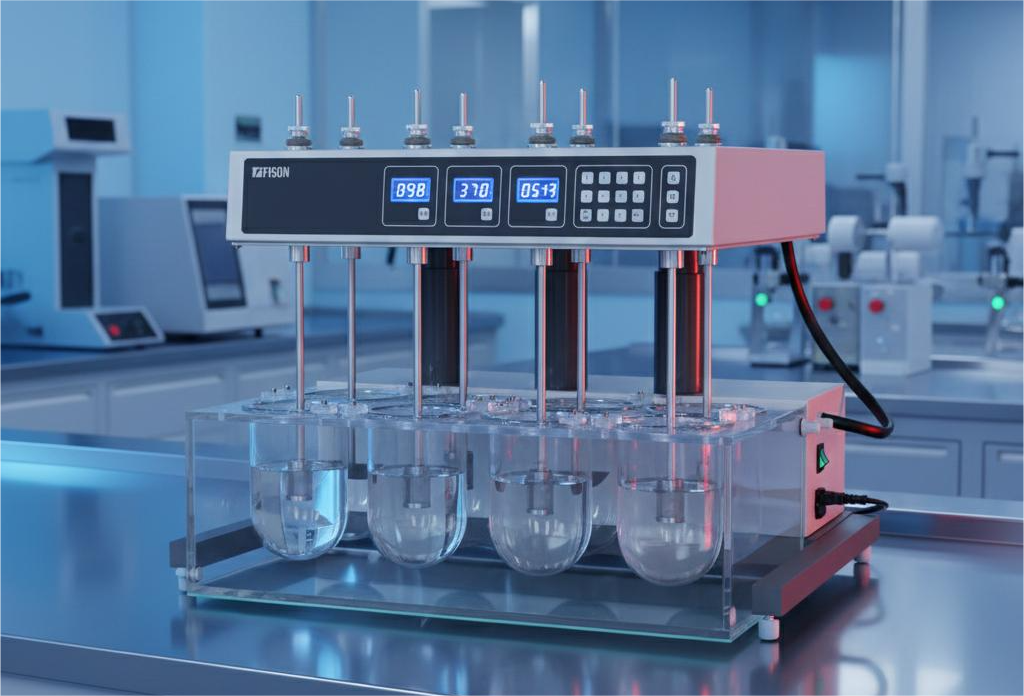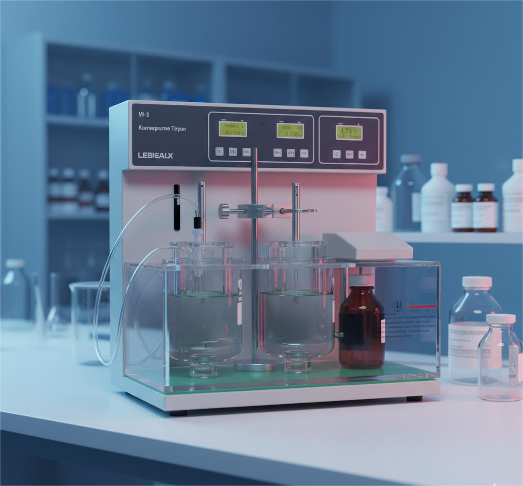A dissolution apparatus is a pharmaceutical laboratory instrument used to measure the rate at which a drug is released from solid dosage forms into a liquid under simulated physiological conditions It commonly uses USP Apparatus 1 (Basket) for capsules and USP Apparatus 2 (Paddle) for tablets, with controlled temperature (37 °C) and stirring speed The system ensures product quality, predicts bioavailability, and meets regulatory requirements, using components such as vessels, a water bath, paddles/baskets, and automated sampling systems.